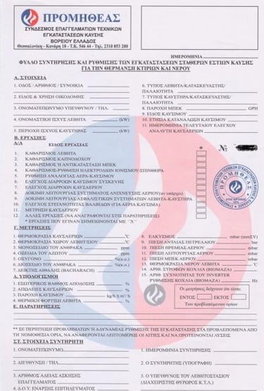 Σύμφωνα με την ισχύουσα νομοθεσία, μετά από κάθε συντήρηση, επισκευή ή ρύθµιση, ο συντηρητής υποχρεούται να συµπληρώνει µε επιµέλεια, ακρίβεια και πληρότητα και να υπογράφει το Φύλλο Ελέγχου Καύσης συντήρησης. Στο φύλλο συντήρησης αναφέρονται ενδεχόµενα προβλήµατα, δυσλειτουργίες ή ελλείψεις, που επηρεάζουν την αποδοτική και ασφαλή λειτουργία του συστήµατος καυστήρα – λέβητα – καπνοδόχου, όπως επίσης, προτείνονται οι ενδεδειγµένες -κατά την άποψη του συντηρητή- λύσεις.